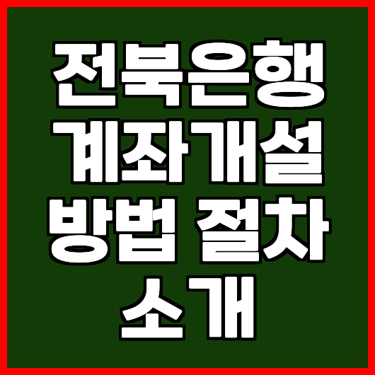 전북은행 계좌개설 방법은 온라인 신청 또는 가까운 지점을 방문하는 방식이 있습니다. 온라인 신청 시 필요한 정보를 입력하고, 서류를 제출하면 됩니다.