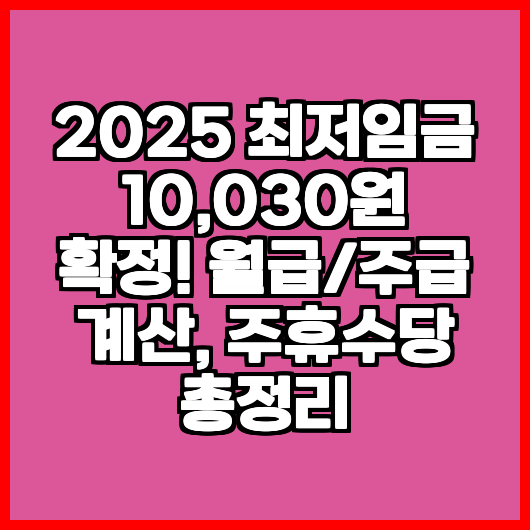 2025 최저임금 10,030원 확정! 월급/주급 계산, 주휴수당 총정리