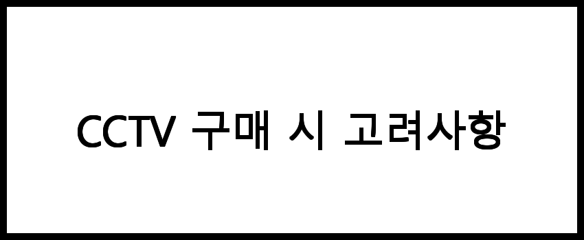 CCTV를 구매하기 전에 고려해야 할 사항은 여러 가지가 있습니다. 다음은 CCTV 구매 시 중요하게 생각해야 할 요소들입니다.
