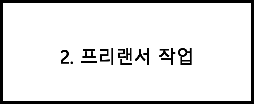 프리랜서는 특정한 기술이나 서비스를 제공하는 자영업자로, 글쓰기, 디자인, 프로그래밍 등 자신의 전문 분야에서 일할 수 있습니다. 다양한 프리랜서 플랫폼에서 고객을 찾아 일을 수주할 수 있으며, 유연한 근무시간과 장소에서 일할 수 있는 장점이 있습니다.