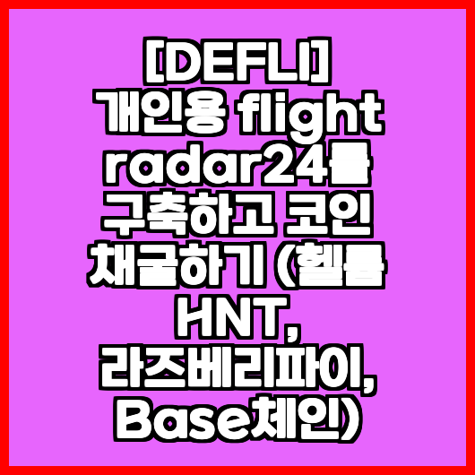 안녕하세요! 오늘은 "[DEFLI] 개인용 flightradar24를 구축하고 코인 채굴하기 (헬륨 HNT, 라즈베리파이, Base체인)"라는 주제를 가지고 여러분과 함께 알아보려 합니다. 개인적으로 플라이트 레이더를 구축하고 이를 통해 수익을 창출하는 방법에 대해 알아보면 매우 흥미로운 경험이 될 것입니다. 이 글을 통해 여러분이 새로운 기술을 배우고, 자신만의 시스템을 구축하면서 코인 채굴의 매력을 느낄 수 있도록 도와드리겠습니다.