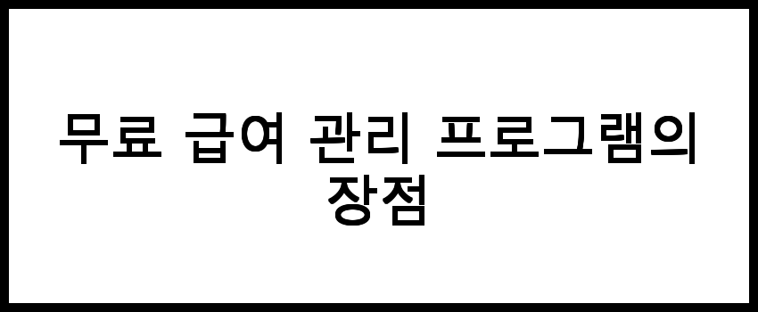 무료 급여 관리 프로그램은 비용 부담 없이 사용할 수 있는 장점이 있습니다. 이러한 프로그램은 주로 소규모 기업이나 스타트업에서 많이 활용됩니다. 다음은 무료 급여 관리 프로그램의 장점입니다.