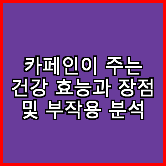 적으로, 카페인은 적절히 활용할 경우 많은 효능과 장점을 제공하지만, 과용 시 부작용이 발생할 수 있습니다. 카페인의 긍정적인 효과를 누리기 위해서는 적정량을 섭취하고, 자신의 몸 상태를 잘 살펴야 합니다. 카페인의 효능과 장점을 잘 이해하고, 부작용을 피하는 것이 건강한 삶을 유지하는 데 중요한 요소가 될 것입니다.