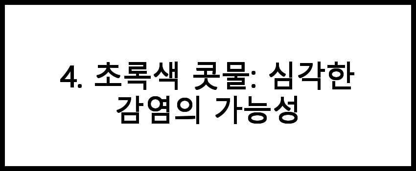 콧물이 초록색일 경우, 이는 좀 더 심각한 감염의 징후일 수 있습니다. 이 색깔은 세균 감염이 있을 가능성을 나타내며, 특히 부비동염이 의심되는 경우가 많습니다. 초록색 콧물이 며칠 이상 지속되거나, 심한 통증이나 발열이 동반된다면 꼭 의사의 진료를 받는 것이 필요합니다.