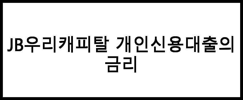 금리는 대출을 받을 때 가장 중요한 요소 중 하나입니다. JB우리캐피탈의 개인신용대출 금리는 고객의 신용등급, 대출금액, 대출 기간 등에 따라 달라질 수 있습니다. 대체로 신용등급이 높을수록 낮은 금리를 적용받는 경향이 있습니다. 일반적으로 JB우리캐피탈의 금리는 시장 평균과 유사하거나 조금 낮은 편입니다.