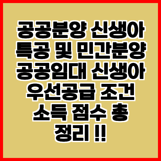 안녕하세요! 오늘은 "공공분양 신생아 특공 및 민간분양 공공임대 신생아 우선공급 조건 소득 점수 총 정리 !!"라는 주제로 여러분께 유용한 정보를 전달해 드리려고 합니다. 많은 가구들이 주택 마련을 위해 고민하는 요즘, 특히 신생아를 둔 가정은 더욱 특별한 지원이 필요합니다. 이번 글에서는 이러한 공공분양 및 민간분양에서 신생아에 대한 우선공급 조건과 소득 점수에 대해 상세히 살펴보겠습니다.