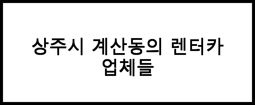 상주시 계산동에서는 여러 렌터카 업체가 운영되고 있습니다. 인터넷을 통해 다양한 업체의 가격과 조건을 비교할 수 있으며, 직접 방문하여 상담 후 계약하는 것도 좋은 방법입니다.