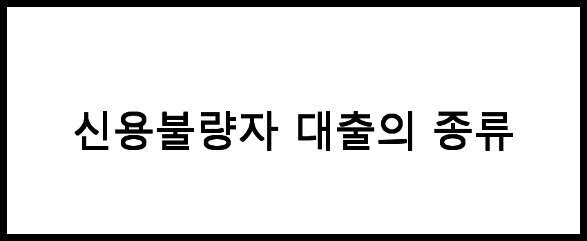 신용불량자가 이용할 수 있는 대출 상품은 여러 가지가 있습니다. 주요 대출 종류는 다음과 같습니다: