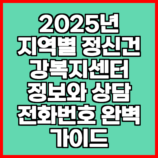 2025년 지역별 정신건강복지센터 정보와 상담 전화번호 완벽 가이드