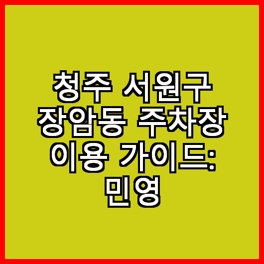 청주 서원구 장암동 주차장 이용 가이드는 민영 주차장을 이용하는 모든 이들에게 유용한 정보와 도움을 제공합니다. 주차장 이용에 대한 궁금증을 해소하고, 보다 나은 주차 경험을 제공하기 위한 다양한 팁과 정보를 확인하시기 바랍니다. 청주 서원구 장암동 주차장을 통해 편리한 주차 경험을 누리시기 바랍니다. ## 자주 묻는 질문