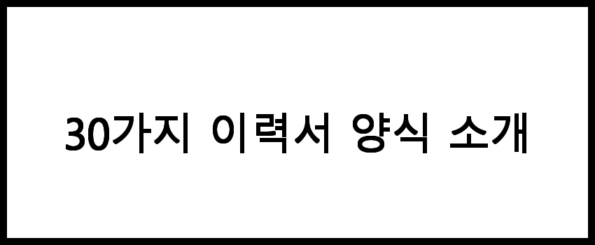 다양한 이력서 양식을 무료로 다운로드할 수 있는 사이트에서 제공하는 30가지 양식을 소개합니다. 이 양식들은 각기 다른 스타일과 구성을 가지고 있어, 개인의 필요에 맞춰 선택할 수 있습니다.