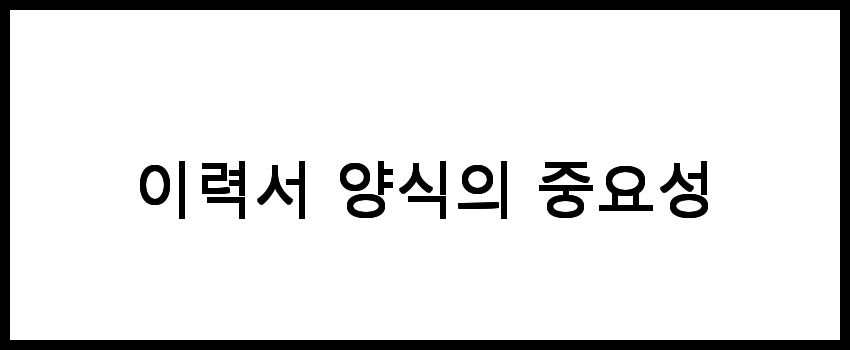 이력서 양식은 구직자에게 필수적인 자원으로, 올바른 양식을 사용함으로써 자신의 강점을 부각시킬 수 있습니다. 무료로 제공되는 이력서 양식을 활용하여 전문적이고 매력적인 이력서를 작성해 보세요. 여러분의 경력과 능력을 잘 표현하는 이력서 양식은 성공적인 취업의 첫걸음이 될 것입니다.