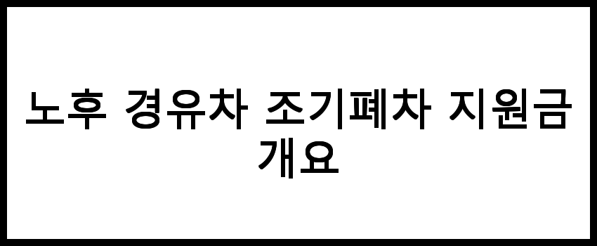 노후 경유차 조기폐차 지원금은 환경 오염을 줄이고 대기 질을 개선하기 위해 정부에서 시행하는 정책입니다. 이 지원금은 특정 연식 이상의 경유차를 조기 폐차하고, 그에 따라 새로운 저공해 차량 구매를 유도하기 위해 제공됩니다. 이를 통해 노후 차량에서 발생하는 유해 물질과 미세먼지를 줄이는 것이 목적입니다.