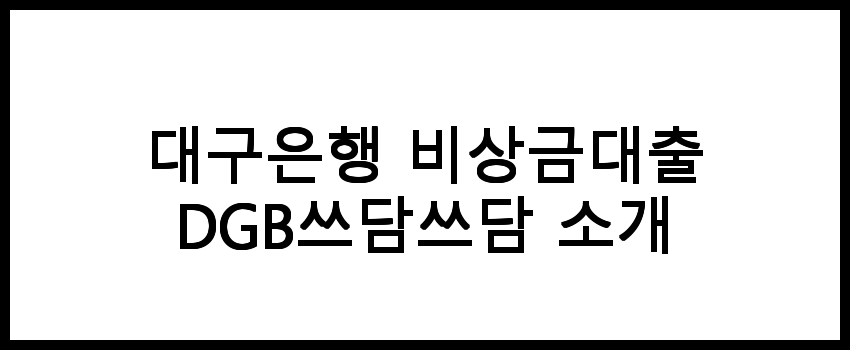 대구은행 비상금대출 DGB쓰담쓰담 간편대출은 현재 많은 사람들에게 필요한 자금을 신속하게 지원하는 금융 상품으로 주목받고 있습니다. 이 대출은 간편한 신청 절차와 유연한 조건 덕분에 특히 바쁜 현대인들에게 큰 도움을 주고 있습니다. 대구은행 비상금대출 DGB쓰담쓰담 간편대출은 필요한 순간에 적시에 자금을 지원받을 수 있는 좋은 선택이 될 수 있습니다.