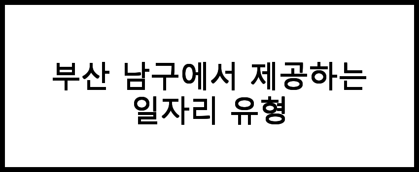 부산 남구에서는 다양한 유형의 일자리가 제공됩니다. 이들 일자리는 주로 다음과 같은 분야로 나뉩니다: