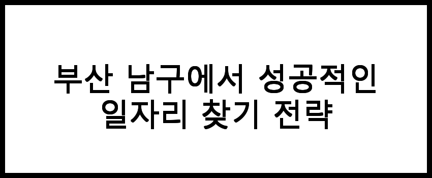 부산 남구에서 성공적으로 일자리를 찾기 위해 몇 가지 전략을 사용할 수 있습니다:
