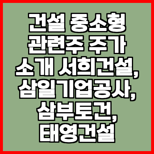 건설 중소형 관련주는 최근 주식 시장에서 많은 관심을 받고 있습니다. 서희건설, 삼일기업공사, 삼부토건, 태영건설과 같은 기업들이 주가 상승에 기여하고 있으며, 이들 기업의 동향을 분석하는 것이 중요합니다. 따라서 건설 중소형 관련주의 주가를 살펴보는 것은 투자자들에게 유익한 정보가 될 것입니다.